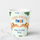 Funny dinosaur 2nd birthday party paper cups with green blue and orange colour scheme and safari theme.  Personalise it with your event details.  Unisex design for a boy or girl.