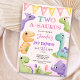 Dinosaur 2nd Birthday Girl Pink Cute Dino Party Invitation
