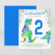 This Roaring colourful T. Rex and cute multicolored stegosaurus invite Dino fans to a prehistoric jungle 2nd birthday party for dinosaur lovers. Personalise this Tyrannosaurus and stegosaurus invitation by adding the name of the birthday boy or girl, the number of the birthday and the party details and you are all set for a fun packed Jurassic dinosaur bold blue themed dino birthday party. All dinosaur species are welcome. Prehistoric jurassic era Dinosaur illustrations, original artwork by artist by Catherine Sweetman