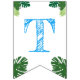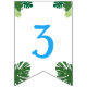 Funny dinosaur 3rd birthday party bunting flag banner with blue watercolor tyrannosaurus rex and green leaves. Great for a prehistoric boy's bday party.