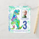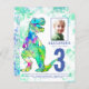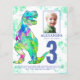 For the boy who’s turning three and who loves dinosaurs. This Roaring T-Rex invites Dino fans to a fun 3rd birthday party. Personalise this colourful watercolor splash blue and green third birthday invitation with a photo of the birthday boy, the number of the birthday and the party details and you are all set for a fun packed dinosaur themed dino birthday. All dinosaur species are welcome. Unique beautiful original artwork by artist Catherine Sweetman