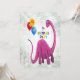9th birthday party invitation for a child who loves dinosaurs. A dinosaur smiling at three balloons tied to his tail. Have a roaring good party with an invitation that all the children will adore. Add your party details to personalise a very special birthday party invite.