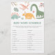 Invite your loved ones to celebrate your upcoming little miracle with our Dinosaur Baby Shower Game. Crafted with love, this delightful range of invitations is perfect for both baby boys and baby girls, as we've designed it to be truly gender-neutral. The dinosaurs have been hand-painted in bright, joyful hues of yellow, sage green, and blue. Paired with whimsical typography, they create a heartwarming celebration of new life about to begin. Each invitation can be personalised with your party details, adding a unique touch to your baby shower. Give your baby shower a touch of charm and whimsy with our Cute Dino Baby Shower Collection. (Key - 1. diaper, 2. stroller, 3. pacifier, 4. baby, 5. precious, 6. rocking chair, 7. crib, 8. milk, 9. car seat, 10. nursery, 11. formula, 12. stork, 13. bundle of joy, 14. lullaby, 15. blanket, 16. high chair, 17. shower, 18. dinosaurs, 19. bibb, 20. rubber ducky)