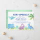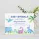 Customise this Cute Brachiosaurus, Stegosaurus, Pterodactyls, Dinosaurs that have Tropical Greenery Botanical Watercolor of green and blues Baby Shower Invitations on green background - includes beautiful and modern script typography with fun tropical palm trees and greenery for the special Mother to Be celebration.