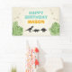 I’m so happy with my order! Arrived on time and shipping my order was super fast! The quality of the banner is amazing! I can’t wait until I use it for my backdrop for my sons Dinosaur theme Party! My husband made a pvc pipe stand for it, and it fit perfectly! This one in the picture is a 3’ by 5’ horizontal banner. The printing is perfect!