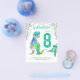 For the child that loves dinosaurs this Roaring colourful T-Rex and cute stegosaurus invite Dino fans to a 8th birthday party for dinosaur lovers. Personalise this colourful psychedelic Tyrannosaurus and stegosaurus invitation by adding the name of the birthday boy or girl, the number of the birthday and the party details and you are all set for a fun packed dinosaur teal green themed dino birthday. All dinosaur species are welcome. Prehistoric jurassic era Dinosaur illustrations, original artwork by artist by Catherine Sweetman