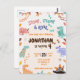Ready for a cool dinosaur theme birthday party? This design features a watercolor of colourful dinosaurs, wild greenery, watercolor details, and gold dinosaur silhouettes with stomping feet, with modern "Born to be wild" and "Stomp, chomp & roar" typography. All text is editable on this birthday budget-friendly postcard! This design is for any age, gender-neutral, for 1st and 2nd birthdays, and older kids. Find matching items in my shop.