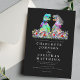 The design includes elegant modern white script typography that’s easy to personalize simply add the bride and groom’s names, wedding date, and all your special details. Set against a sleek black background, this invitation blends whimsical dinosaur art with chic modern style.