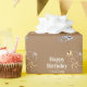 This unique custom wrapping paper features a dinosaur fossils theme printed on a pale brown background. The skeletons of a t-rex, pterodactyl, and a triceratops are featured in an illustrated design. The phrase "Happy Birthday" is printed above a sample name in a simple white font. You can personalise the wrapping paper to include your own name or custom text.