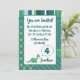 Dinosaur birthday invitation with polka dot, stripes patterns. Green/blue dino invitation card. Customise it