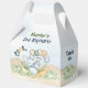 1st, 2nd or any Birthday Large Gable Favour Boxes featuring colourful dinosaurs surrounded by whimsical fern plants and balloons in blue, green and beige-yellowish shades perfect for boys. You can choose from 3 sizes of these gable favour boxes. Easily personalise the text. - Kate Eden Art