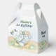 1st, 2nd or any Birthday medium gable favour boxes featuring colourful dinosaurs surrounded by whimsical fern plants and balloons in blue, green and beige-yellowish shades perfect for boys. You can choose from 3 sizes of these gable favour boxes. Easily personalise the text. - Kate Eden Art