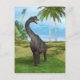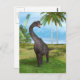 3D digital render of a dinosaur Brachiosaurus on background of blue sky and green palm trees