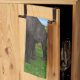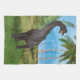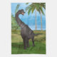 3D digital render of a dinosaur Brachiosaurus on background of blue sky and green palm trees