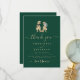 Make your wedding unforgettable with this funny dinosaur-themed thank you card, featuring a whimsical T-Rex bride and groom set on a rich dark green background, this unique design combines playful dinosaur art with modern elegant wedding style perfect for couples who want to say thank you in a fun and unforgettable way.