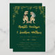 Funny Dinosaur theme dark emerald green and gold foil Wedding Invitation T-Rex Bride and Groom Modern Jungle Theme