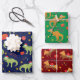 Dinosaur Christmas Santa Hat Pattern Wrapping Paper Sheet