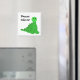 A cute magnet design featuring a little green dinosaur with green spots and a spikey tail. 'Dinosaur Collectors will want to add this magnet to showcase their love for these prehistoric animals.