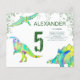 This cute watercolor parasaurolophus, flying pterodactyl and stegosaurus invite Dinosaur fans to a 5th birthday party for prehistoric dino lovers. Personalise this beautiful watercolor art along with jungle foliage fifth birthday party budget invitation with the name of the birthday boy or girl, the number of the birthday and the party details and you are all set for a fun packed dinosaur jungle green themed happy birthday. All dinosaur species are welcome. Prehistoric jurassic era Dinosaur illustrations, original artwork by artist by Catherine Sweetman