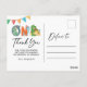 Modern, colourful and elegant boy first birthday thank you card. Design featuring Dino script one , thank you message and a photo. Perfect as a thank you for Dinosaur themed first birthday party.