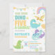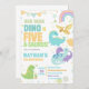 Dinosaur Five-A-Saurus 5th Birthday Party Pastel Invitation
