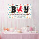 We create this fun, fresh and colourful banner for baby/kid birthday party with dinosaur theme pattern and a big T-rex in the centre, change the text, the message, and the date. Enjoy a jurassic wild party!