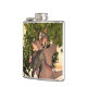 The flask itself is fine. It’s a cheap flask, obviously bought in bulk, however am prepared to overlook that. Given that it is a personalized item, I would have liked to have seen gift boxing instead of the generic packaging. Terrible printing, and/or quality. It’s a cheap, tacky vinyl. It is not cut straight and is also applied in a way that it is overhanging the bottom, causing the glue to catch on items and it will eventually roll and tear, damaging the wrap.