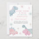 Cute girl's birthday party invitation featuring illustration dinosaurs and stars in pastel colours. The text says "stop, chomp, and roar. Let's party like a dinosaur!"