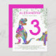 3rd birthday celebrations for your little T. rex. This Roaring colourful T. Rex and cute stegosaurus invite Dino fans to a birthday party for dinosaur lovers. Personalise this Tyrannosaurus rex and stegosaurus Jurassic jungle third birthday party invitation by adding the name of the birthday boy or girl, the number of the birthday and the party details and you are all set for a fun packed dinosaur pink themed dino third birthday. All dinosaur species are welcome. Prehistoric jurassic era Dinosaur illustrations, original artwork by artist by Catherine Sweetman
