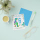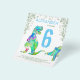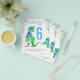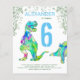 Roaring colourful T-Rex and cute stegosaurus invite Dinosaur fans to a 6th birthday party for dino lovers. Personalise this psychedelic Tyrannosaurus and cute stegosaurus sixth birthday invitation by adding the name of the birthday boy or girl, the number of the birthday and the party details and you are all set for a fun packed dinosaur blue green jungle themed dino birthday. All dinosaur species are welcome. Prehistoric jurassic era Dinosaur illustrations, original artwork by artist by Catherine Sweetman