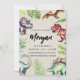 Get ready for a ROAR-some prehistoric party! This editable dinosaur birthday invitation features friendly T-Rex, Triceratops, and Stegosaurus characters in a vibrant jungle scene. The perfect start to planning a dinosaur themed birthday party for kids.