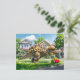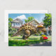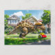 Dinosaur Mowing Lawn in Suburbia Holiday Postcard