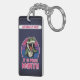 Acrylic Keychain with beautiful illustration of dinosaur on bisexual flag colours background.