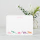 This note card features a colourful dinosaur design in light jewel tone shades and your personalisation. Add your text using the template form. You can change the font and/or the colours using the advanced menu options found when you choose "customise further".
