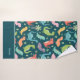 Add a custom Jurassic touch to the bathroom of your little kid with this monogrammed dinosaur set of bath towels. Towels have a pattern of colourful dinosaurs on a dark blue background and your little one's first name and monogram in the bottom right corner. There are also palm trees and cacti.