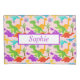 A colourful cartoon dinosaur pattern. Bright and fun prehistoric design with a mix of dinosaurs, T-Rex, Tyrannosaurus Rex, Triceratops, Brontosaurus, Dilophosaurus, Iguanodon, Pteranodon ,Stegosaurus and dino eggs all on a pink background. Great pillowcases ( matching Duvet available) for your child's bedroom. Personalise with the child's name to make this a special gift or bedroom decor for those little girls who love dinosaurs.