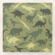Dinosaur Pattern, Dinosaur Silhouette, Green Dino Glass Coaster