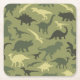 Dinosaur Pattern, Dinosaur Silhouette, Green Dino Square Paper Coaster