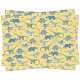 Lots of blue dinosaurs on a yellow background. Tyrannosaurus Rex, Spinosaurus, Stegosaurus, Diplodocus and Triceratops.