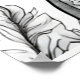 A vicious looking t-rex dinosaur, in black and white, on a wall poster for you to color or display, as is.