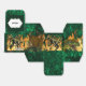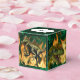 A modern, fun and eye-catching design featuring prehistoric Tyrannosaurus rex and wooly mammoth animals surrounded by green leafy foliage and hot burning fire flames. The top lid has a scalloped banner on which a bold black template appears for your custom wording and / or names. Your son will love these dinosaur themed party favours.