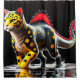 This shower curtain has a dinosaur creature on it.