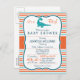 Dinosaur; Teal & Orange Stripes Baby Shower Invitation Postcard