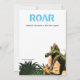 A cool, fun and modern design featuring roaring tyrannosaur t-rex prehistoric animals and a flying pterodactyl surrounded by glowing hot red flames and distressed text in black, blue and orange set against a white background. The dinosaurs are baring their large teeth and both the front and back may be personalised. Ideal for your son who is celebrating a birthday with a Dino theme.