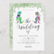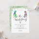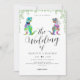 If you and your partner love dinosaurs then this fun dinosaur theme stylish script wedding invitation is perfect for your special day. With funny colourful dinosaur bride and groom with watercolor eucalyptus foliage and easy to use elegant script templates you can add the bride and grooms names, the wedding date and all the important wedding details. Fun unique dino illustrations include blue pink purple green teal and peach painted T-Rex bride and groom wearing a veil and bow tie and watercolor botanical greenery in green hues with beautiful stylish modern script. Original artwork by artist Catherine Sweetman