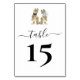Funny Dinosaur Wedding Table Number card. Jurassic T-Rex Bride & Groom dino and elegant modern script.