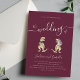 Delight your guests with a fun and unique dinosaur burgundy and ivory cream wedding invitation featuring a charming elegant fun T-Rex bride and groom. The elegant stylish modern script adds a touch of playfulness, while easy-to-use templates allow you to personalise the invitation with the bride and groom’s names, wedding date, and all essential details. This original artwork by artist Catherine Sweetman captures the joyful essence of your big day with its fun dino T-Rex bride and groom illustrations and modern typography. A truly one-of-a-kind design that your guests will love!