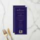 Dinosaur Wedding ceremony navy blue Program card, elegant modern white script and funny T-Rex Bride & Groom on a elegant navy blue background.
