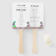 Delight your guests with this fun dinosaur themed wedding day program fan with funny colourful T-Rex bride and groom in a colourful prehistoric wildflower meadow. Easy to customise with the bride and grooms names, the wedding date and all the wedding day ceremony details in modern typography script. Fun Tyrannosaurus Rex bride and groom dino and watercolor floral illustrations in blue pink purple yellow orange and green hues. Unique original dino artwork by artist Catherine Sweetman