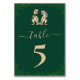 Funny Dinosaur Wedding dark green Table Number card Jurassic T-Rex Bride & Groom dino and watercolor eucalyptus greenery